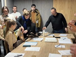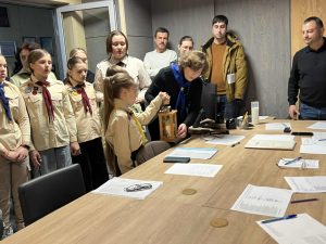 Пластуни привітали керівництво, працівників і депутатів ради з прийдешнім Різдвом Христовим, побажавши миру, стійкості та незламної віри у нашу Перемогу. Кутський селищний голова Дмитро ПАВЛЮК щиро подякував молоді за збереження традицій та важливу місію. У своєму слові він наголосив на тому, що сьогодні символічне світло має нагадувати нам про головний обов’язок кожного українця: «Цей вогонь — символ нашої єдності. Але ми маємо пам’ятати: у цей надскладний для країни час ми повинні підтримувати одне одного та наші Збройні Сили України не лише словами, а конкретними діями. Тільки реальна допомога фронту та взаємовиручка в тилу наближають нас до спільної мети».