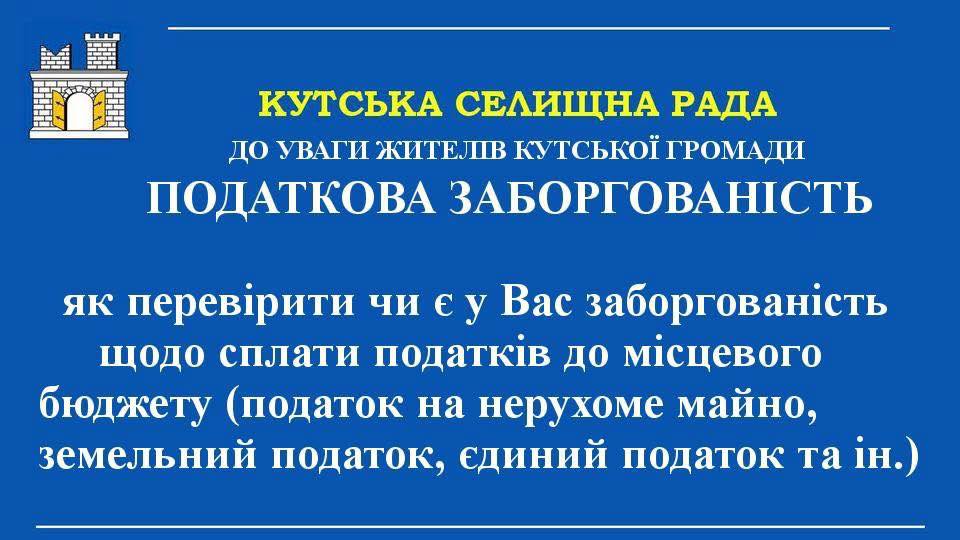 ДО УВАГИ ЖИТЕЛІВ КУТСЬКОЇ ГРОМАДИ! ПОДАТКОВА ЗАБОРГОВАНІСТЬ